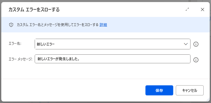 「カスタム エラーをスローする」アクションが追加されました。
