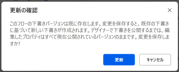 最新バージョンが下書き状態の場合、プロパティを変更すると注意を促す確認メッセージが表示されます。