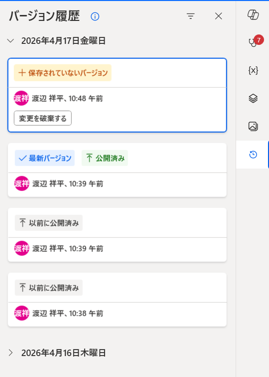 プレビュー機能だったバージョン履歴機能が一般提供開始となりました。