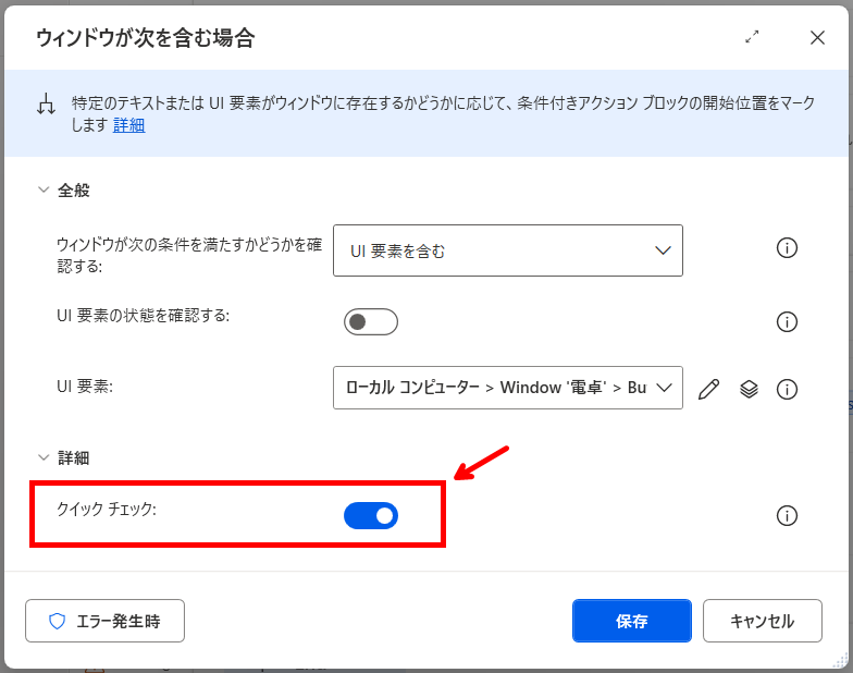 各ウィンドウ条件アクションにクイック チェックが追加され、