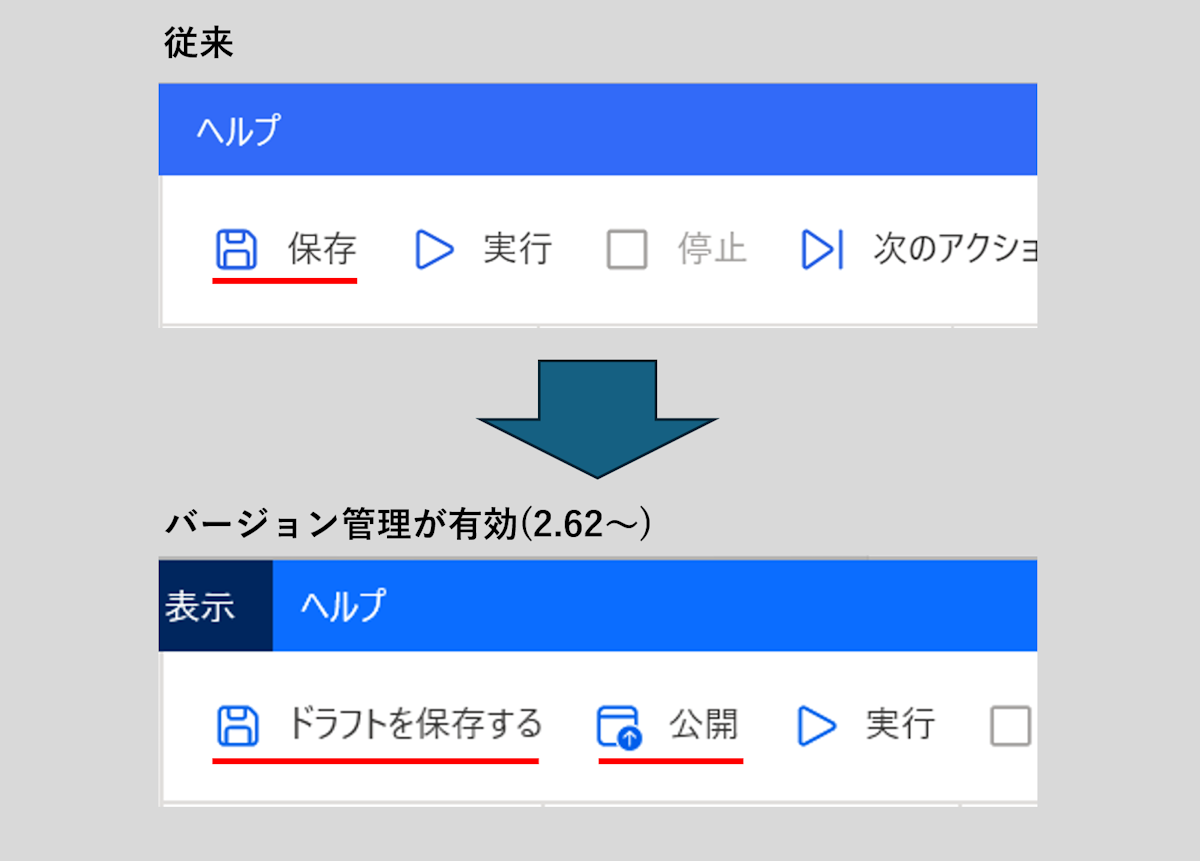 会員限定「ドラフト保存」・「公開」操作について(PAD) カテゴリ: Tips/トラブルシューティング Power Automate for desktop PowerAutomatefordesktopバージョン2.62で追加された「バージョン管理」機能による、デスクトップフローの保存方法の変化点について解説しま……